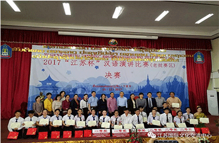 由江苏省委外宣办指导支持,由江苏国际文化交流中心(以下简称“江苏中心”)、南京大学海外教育学院与东南亚老挝、柬埔寨、泰国著名大学联合主办的2017第七届“江苏杯”汉语演讲比赛,于12月下旬首次在三国成功举办。以“江苏中心”刘翎秘书长为团长的代表团赴三国参加决赛开幕式并为获奖选手颁奖,代表团成员有:南京大学海外教育学院院长赵文书教授、副院长曹贤文教授,“江苏中心”理事、南京大学海外教育学院程爱民教授,南京大学海外教育学院教授敖雪岗、徐昌火等。比赛设置一等奖2名,二等奖4名,6名获奖者将获得2018年为期8天的“江苏文化游”或南京大学一学期汉语学习(免学费)的奖励。由老挝国立大学、老挝苏州大学、寮都公学共同主办的“江苏杯”汉语演讲比赛老挝赛区的决赛,于12月16日在老挝国立大学二楼大礼堂拉开序幕。中国驻老挝大使馆赵承刚参赞、老挝教育和体育部波兰副部长、“江苏中心”刘翎秘书长、南京大学海外教育学院赵文书院长、老挝国立大学宋詹副校长、老挝苏州大学黄兴副校长、寮都公学李秀珍副校长,以及相关承办院校的领导及指导老师们出席了此次活动。宋詹副校长代表老挝国立大学在开幕式上致辞,她首先向“江苏中心”和南京大学表示感谢,向以刘翎秘书长为首的代表团表示欢迎,她说,中老两国世代友好,无论是政府还是民间,均有多种方式的文化交流,老挝当地的学生和家长都希望通过学习中文,了解中国文化。这次比赛的举办,激励了当地学生学习汉语的热情,提升了学生们的汉语水平,也加深了中老两国人民之间的友谊。刘翎秘书长代表“江苏中心”致辞,她首先向在座嘉宾及参赛学生介绍了“江苏杯”汉语演讲比赛举办的情况,并向为此次比赛付出辛劳的三所主办大学及老师们表示感谢,对老挝教育体育部国际司所给予的支持表示感谢,她说,江苏省是中国经济最发达、也是历史文化积淀最深厚的省份之一,拥有南京、苏州、扬州、徐州等一批具有千年历史的文化名城。此次比赛为获奖学生制定了“江苏文化8日游”的奖励,为同学们打开了一扇实地观察中国、观察江苏社会发展现况的窗口,可以近距离地触摸中国历史和文化遗存。赵文书院长代表南京大学致辞。他说,语言是国际友好交流的重要桥梁,是增进理解和传递友谊的重要手段。我希望通过这次汉语演讲比赛,能够为在老挝学习汉语的学生提供一个学习、交流、提高和挑战自我的良好平台,推动大家更好地了解中国、了解江苏,到江苏学习、工作,促进中老青年的交流和交往。